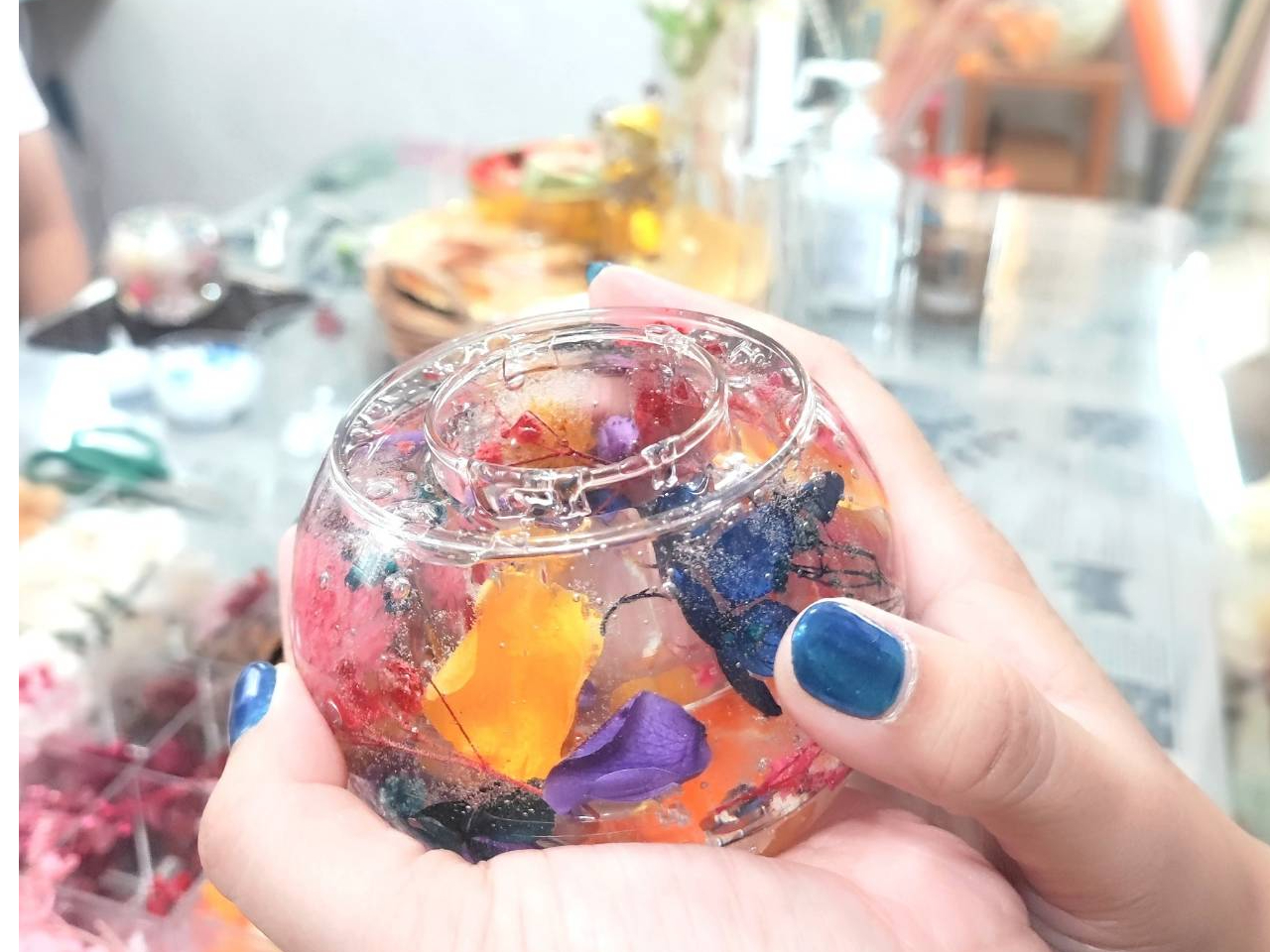 キラキラお花が浮かぶ、プリザーブドフラワー、ドライフラワー、アーティ者るフラワー