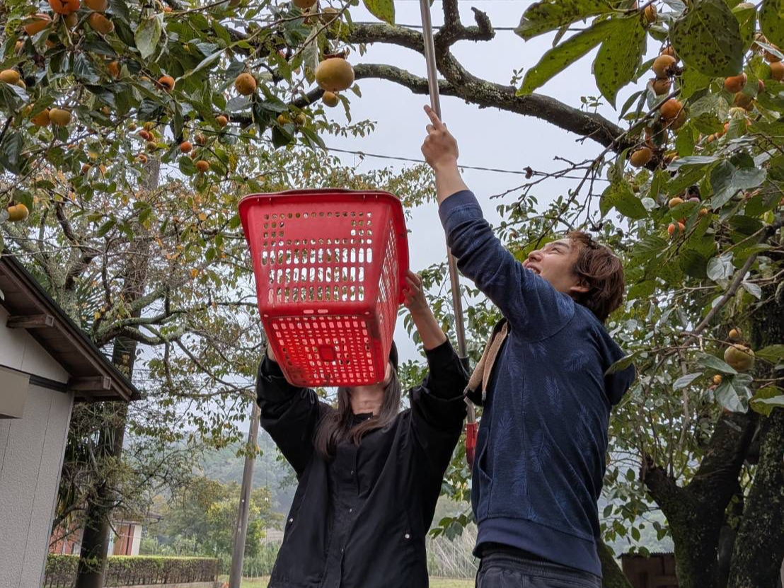 千葉県君津市の畑で柿狩りと種まき体験ができるプランです♪
