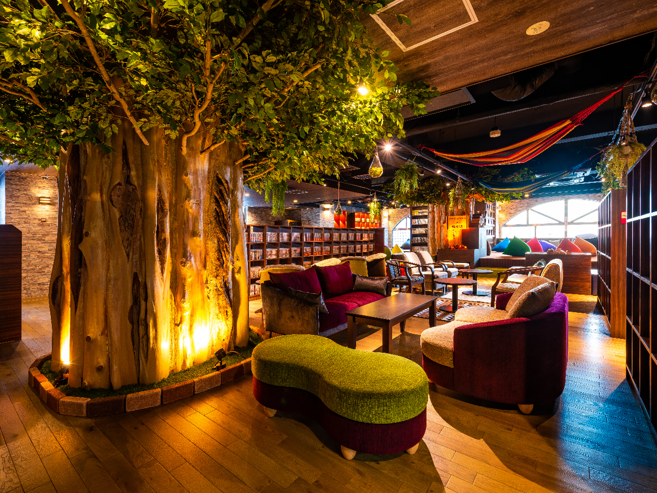 ◇館内着とタオルがセットなので手ぶらでOK!ハンモックやソファースペースでごゆっくりお過ごし頂けます。