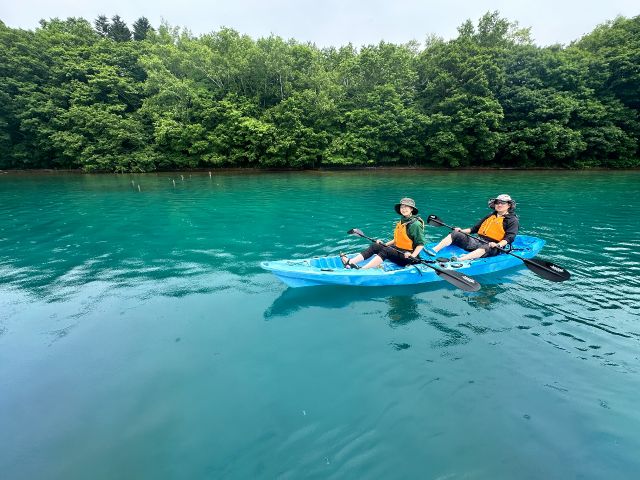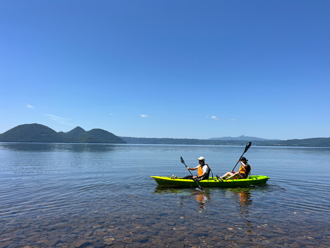【北海道・洞爺湖】のんびりカヤック体験!穏やかな湖上クルーズを楽しもう・春は新緑・秋は紅葉も♪ガイド付きで初心者も安心して楽しめます。カップルや家族旅行にもピッタリ!
