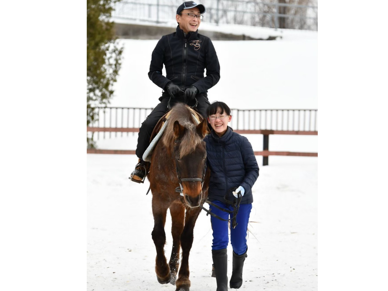 冬は雪の中の乗馬体験も。北海道ならではの冬景色でお楽しみいただけます。