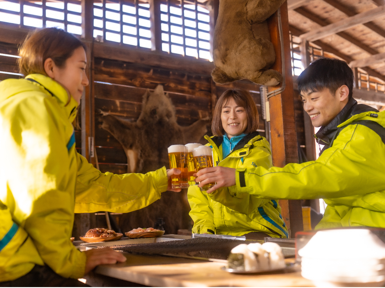 コースは日本最長の本格的な山岳コース!冬の炭火BBQは格別!北海道旅行の最高の思い出になること間違いなし!!