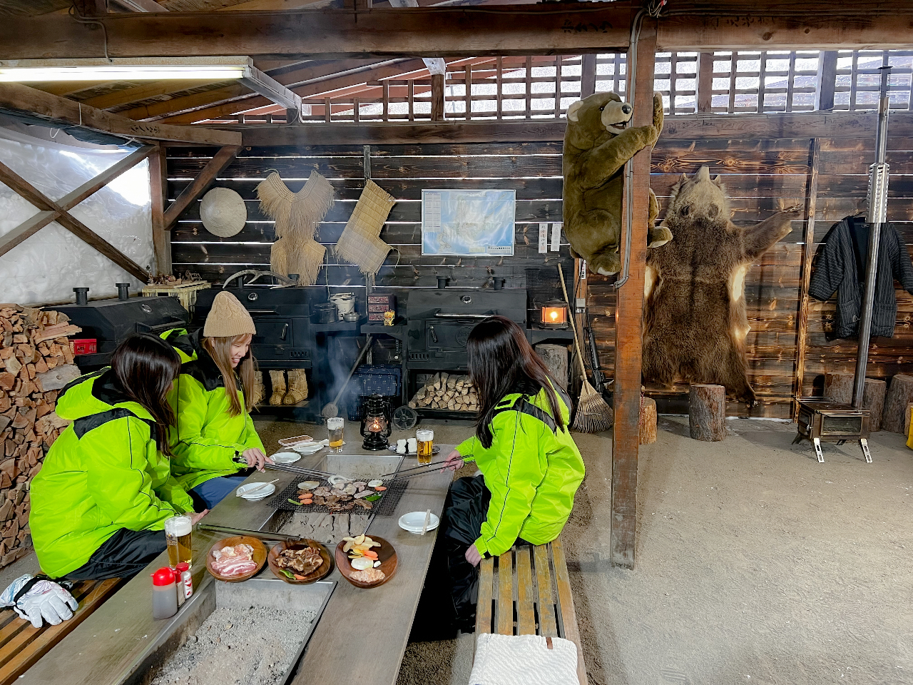 雪中山小屋で食べる炭火焼きBBQは格別です!
