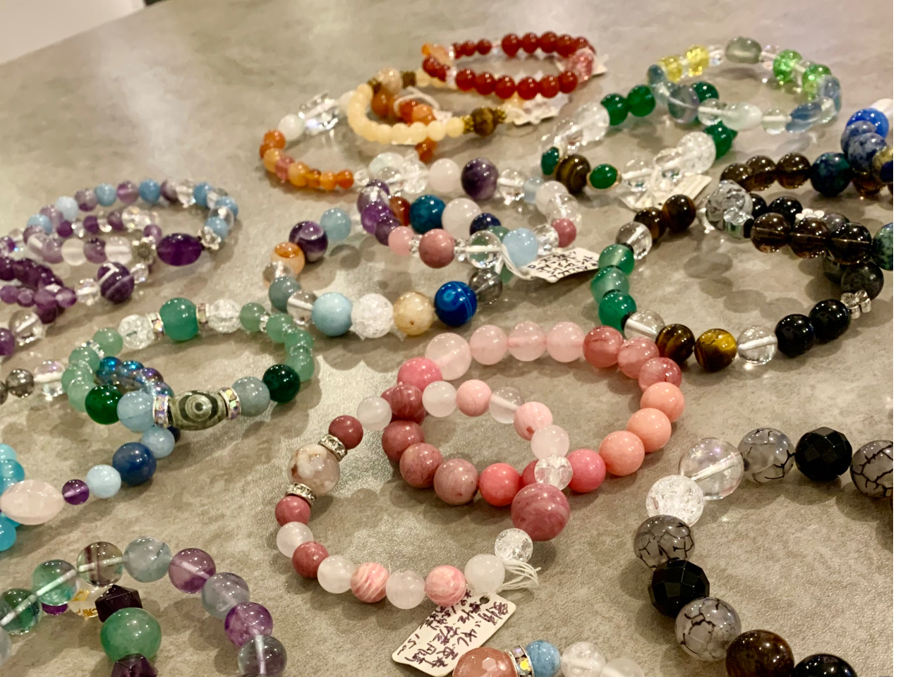 80種類以上の石の中からお好きなものを選んで作る、天然石パワーストーンアクセサリーづくり体験!難しいかを考えないで、インスピレーションで選んで楽しく作りましょう