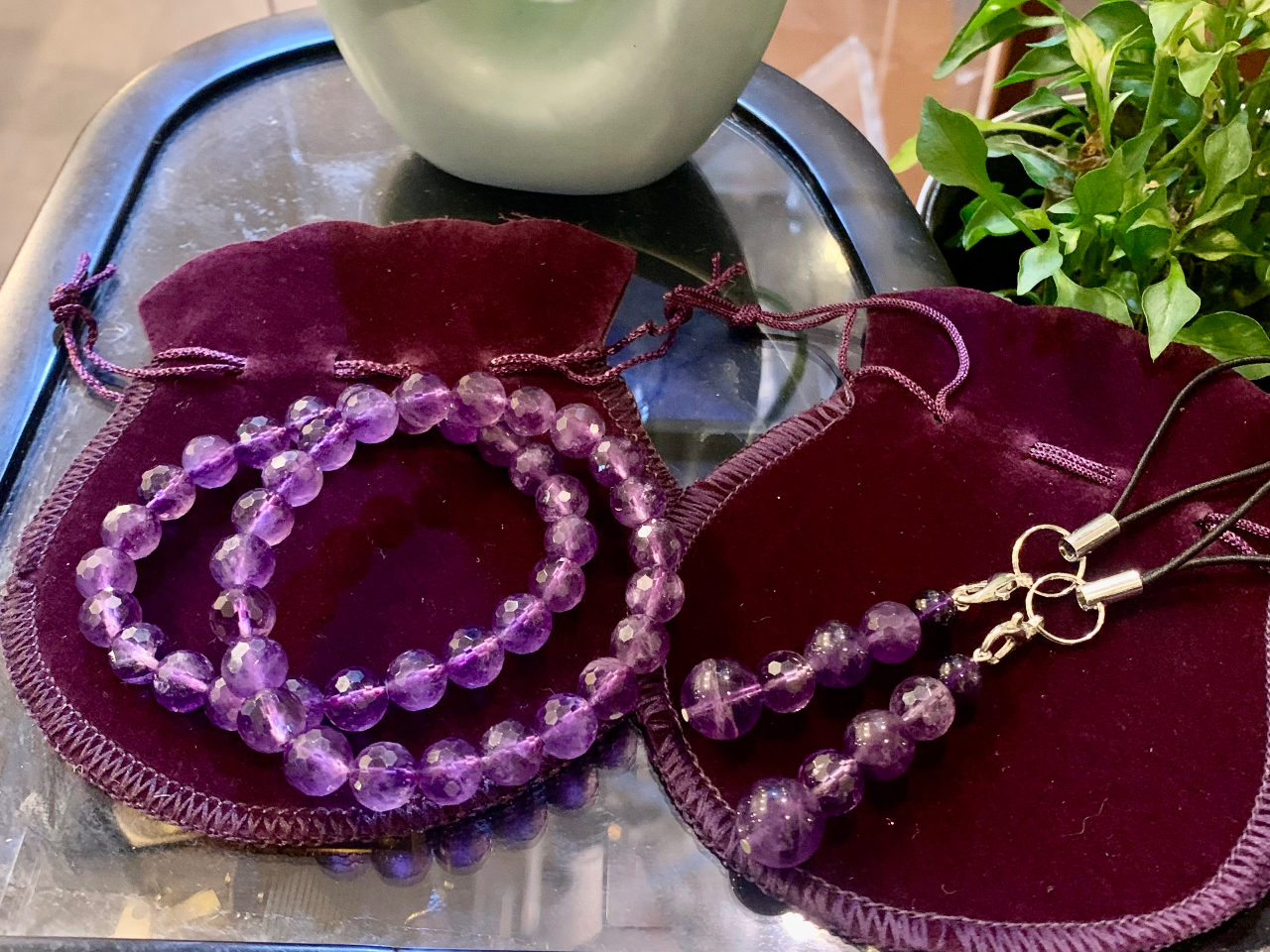 こちらはアメジストだけで作られたお客様の作品になります!ご希望でストラップも追加で作られました♪このようにご希望があればどうぞ!