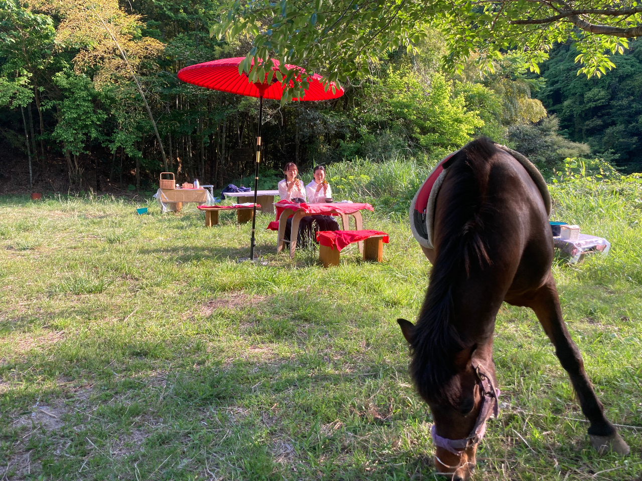 料金に含まれるもの 騎乗、記念撮影、ロングスカートレンタル ティータイム お茶とお茶菓子