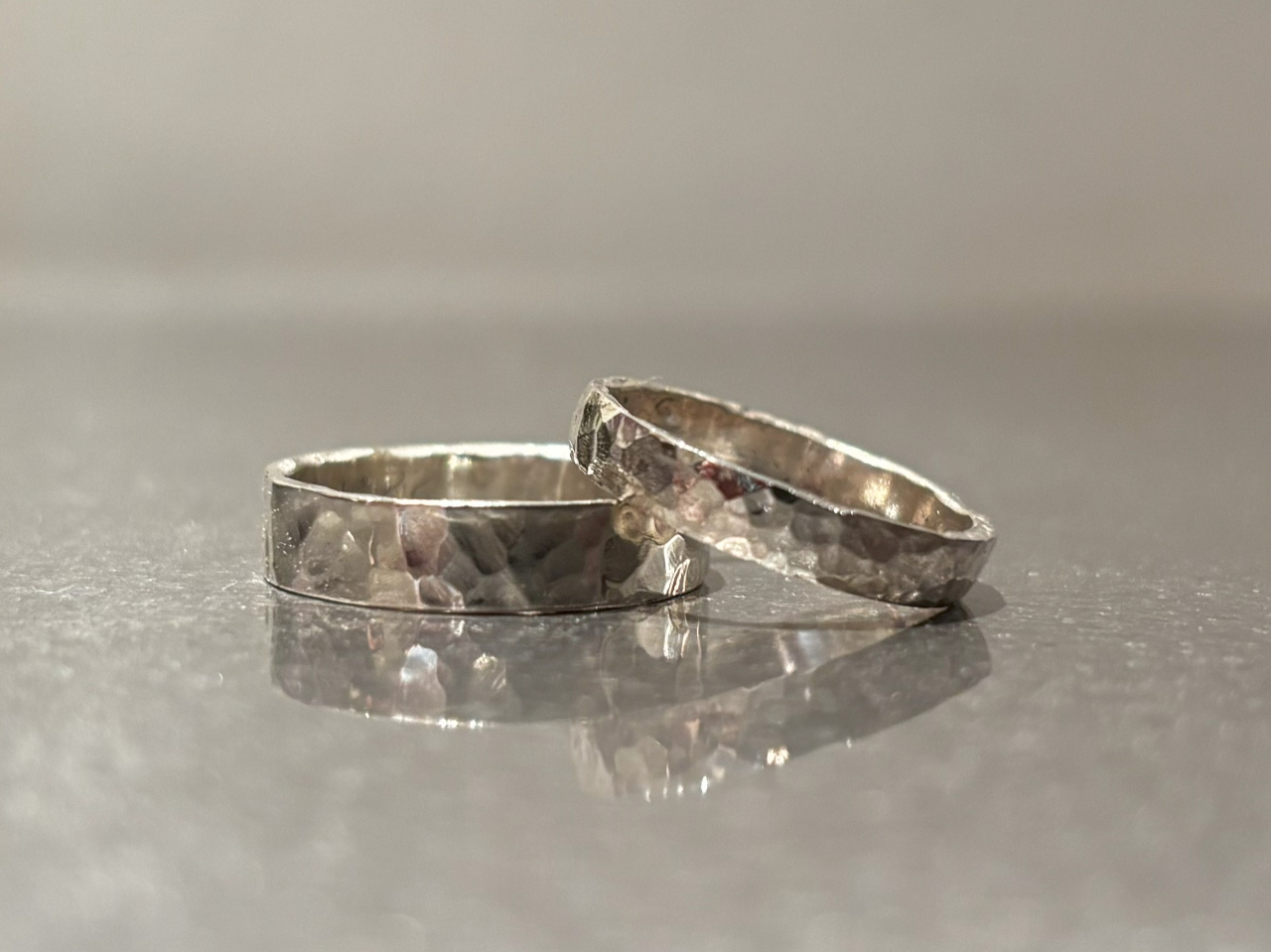 今人気の鍛造法で作成します。お互いのリングを作り合ってプレゼントするのも手作りの良さです。