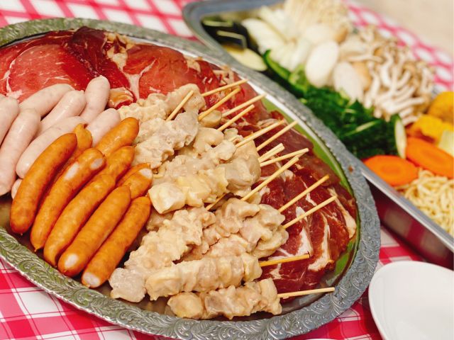 食材の内容としまして、アグー豚、牛肉、鶏肉、焼きそば、野菜などボリュームも完璧!