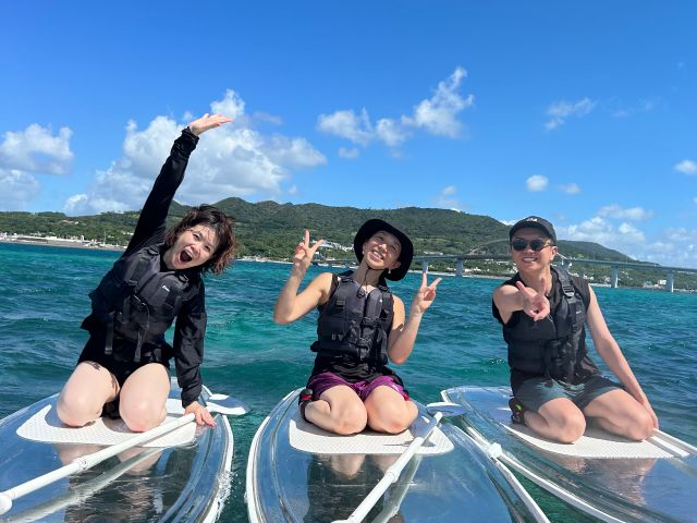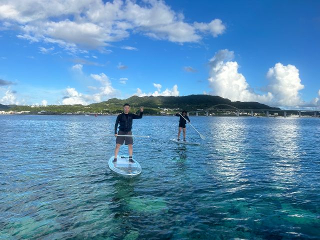 沖縄でも珍しい透明なクリアSUP体験、60分の大満足コースなので最高の思い出になる事間違いなし!