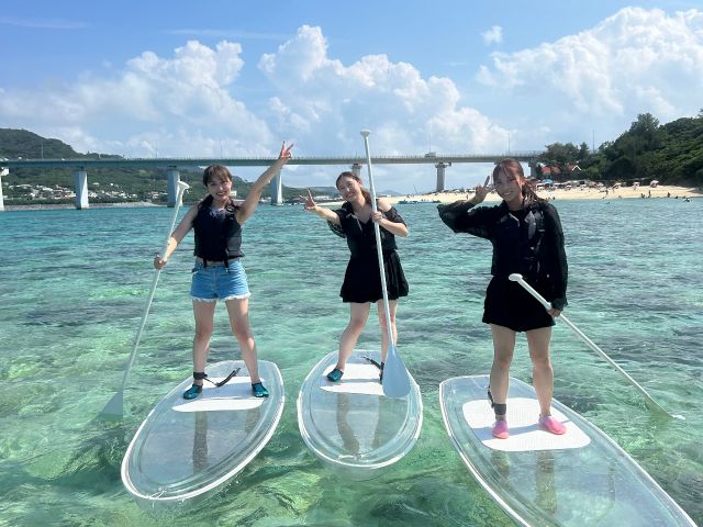 【沖縄本島・北部・瀬底島】最高に綺麗な海で透明なクリアSUP体験たっぷり60分コース!