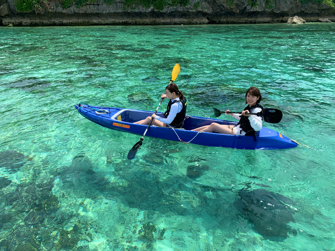 【沖縄本島・北部・瀬底島】海の中と上の絶景を!!カヤック探索ツアー60分コース