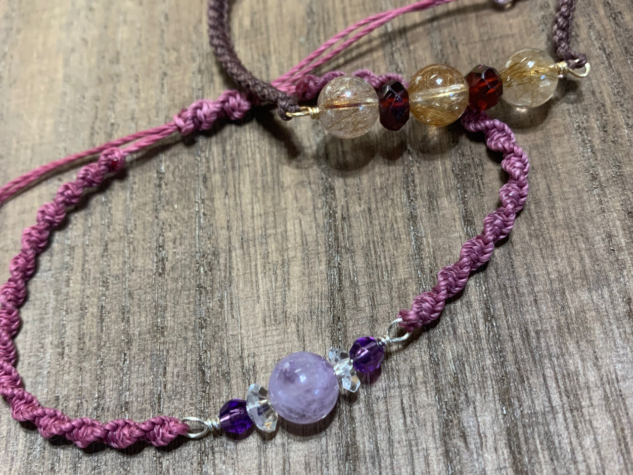 ☆ 天然石とビーズを使いロウビキ紐でブレスレットを編みます。