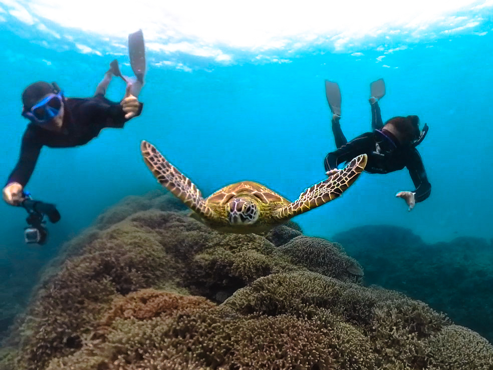 亀様と一緒に泳げる【恩納村なかゆくい】ビーチエントリー スキンダイビング