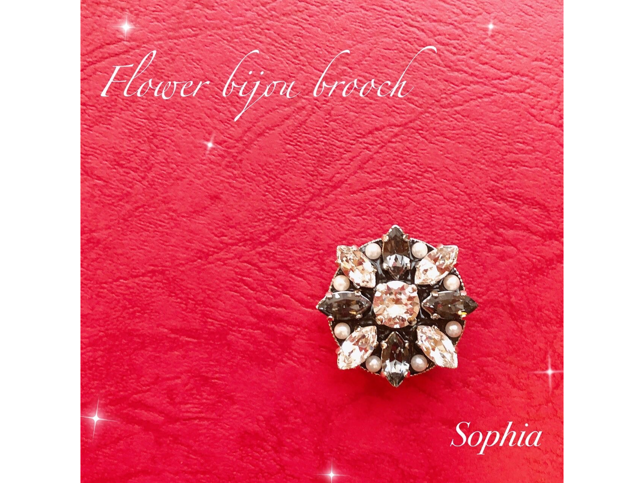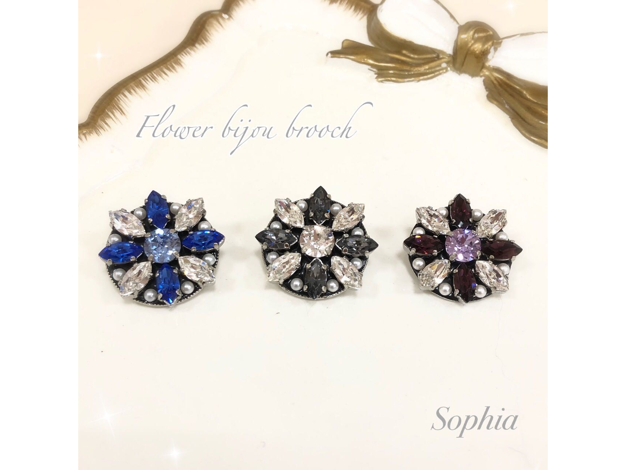【Flower bijou brooch】フラワービジューブローチ お色はブルー系・ブラック系からお選びいただけます。