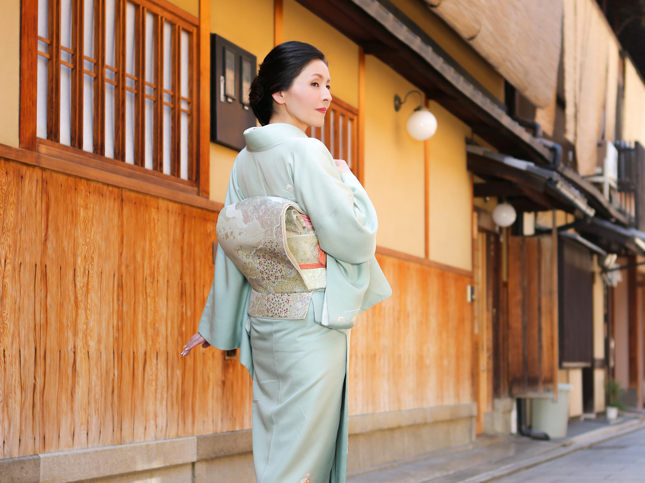 ○モダン柄と正絹の質感があなたを美しく飾ります。正絹ならではの上品な光沢感と着物のシルエットで京都の街を観光してみませんか。