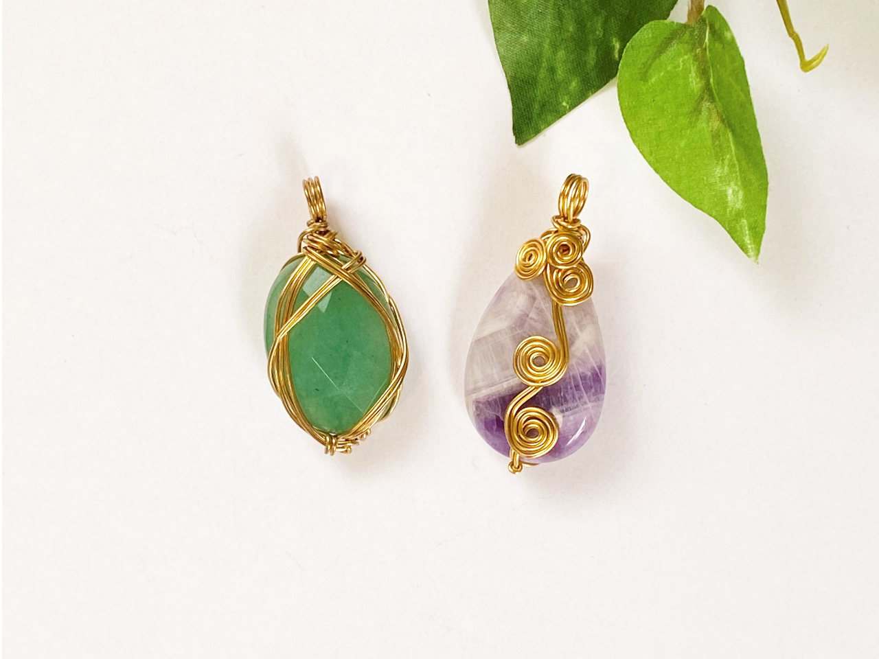 ワイヤーを自由に曲げたり、ウズウズにしたりして、オリジナルのペンダントトップに仕上げましょう!