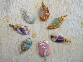 初めに天然石から好きな石を選び頂き、アーティスティックワイヤーを使いペンダントトップを作ります♪
