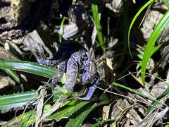 夜の生き物体験ツアーに参加しました。お兄さんがライトとUVライトを貸してくれすぐにオカガニ、ヤドカリ、天然記念物のヤシガニを見つけてくれました。ヤシガニはかなりのレアのようで天然を見れてラッキーでした。1つずつ丁寧に生き物の名前やどんな生態なのか子供にわかりやすく説明してくれ、質問にもたくさん答えてくれました。移動の途中で沖縄の風土や行事等、地元の人しか知らない話をしてくれて、違う文化に子供もびっくりしていました。