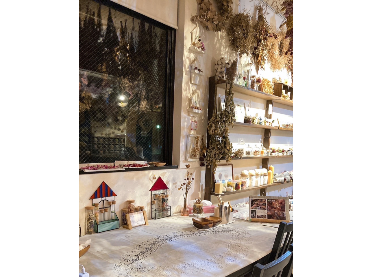 お花、キャンドルワックス、作業道具は全てお店に準備してありますので、