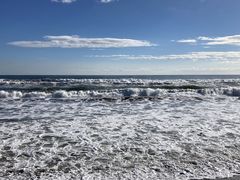 階段を昇ると、外洋から白波が砂浜に打ち寄せる美しい光景が目に飛び込みました。