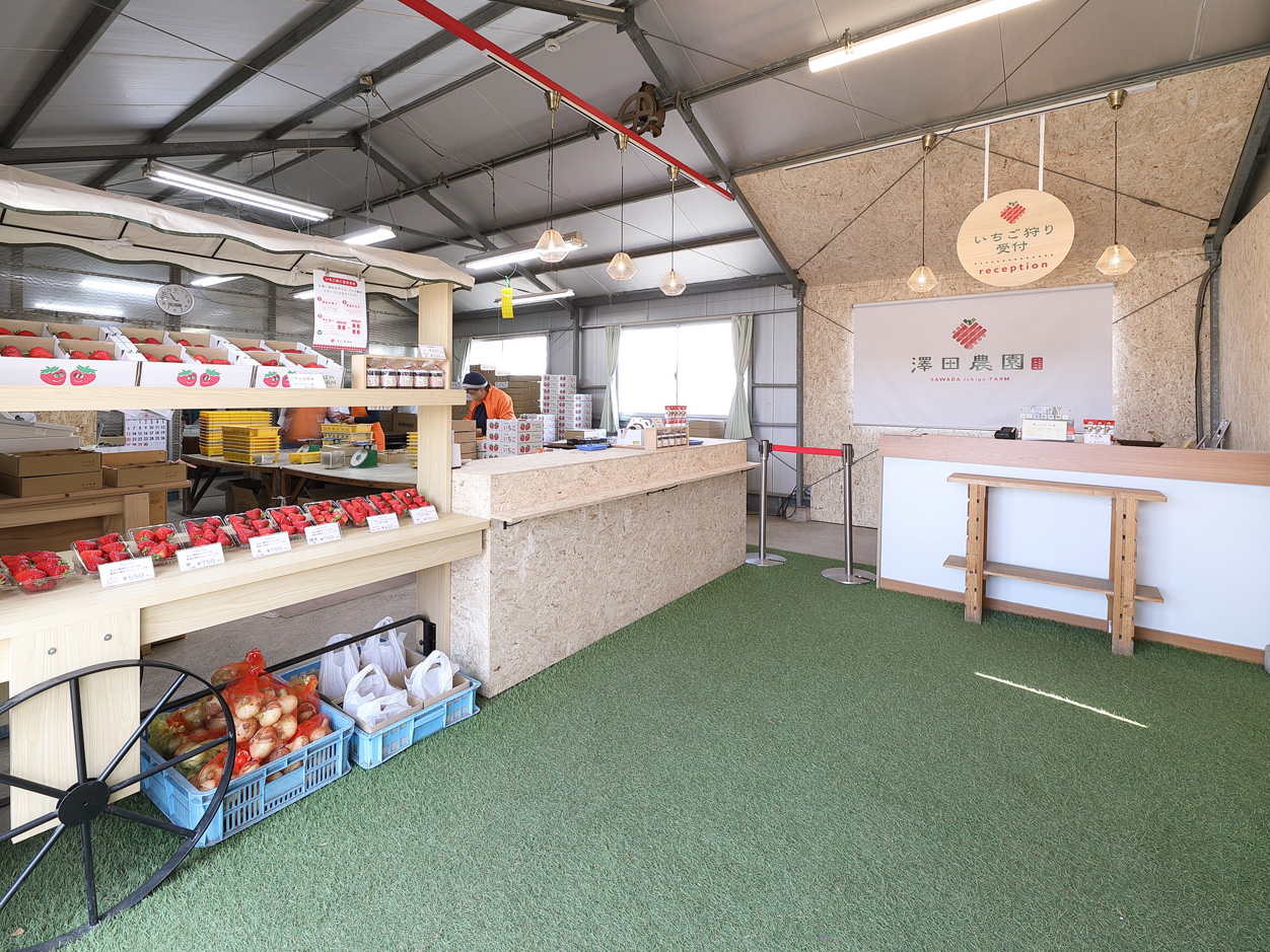 直売所にて澤田農園のいちごやいちごジャムを販売しております♪他にも、時期に応じてトマトなど新鮮な野菜や果物も。