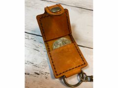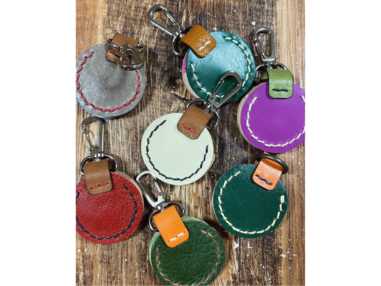カラフルな革から選べます。お好きなお色を組み合わせて5百円玉が合計4枚入るコインケースのキーホルダーを作ります。刻印を入れてもかわいいです。