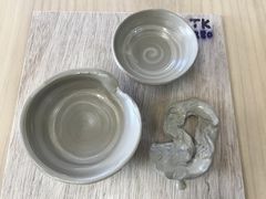 クーポンを利用してお得に体験してきました。その日は私たち夫婦だけで他にお客さんはなくゆったり教わり作品を作る事ができました、全く初めてだったのと不器用なので3つ作るうち私は1つしかまともにできませんでしたが、とても楽しく作業ができました。出来上がった作品は好きな色を選んで塗っていただけ焼き上げていただき翌月に届きました!旦那は2作品仕上げてもらいました!焼き上がると少し小さくなるを計算して作るといいです!
