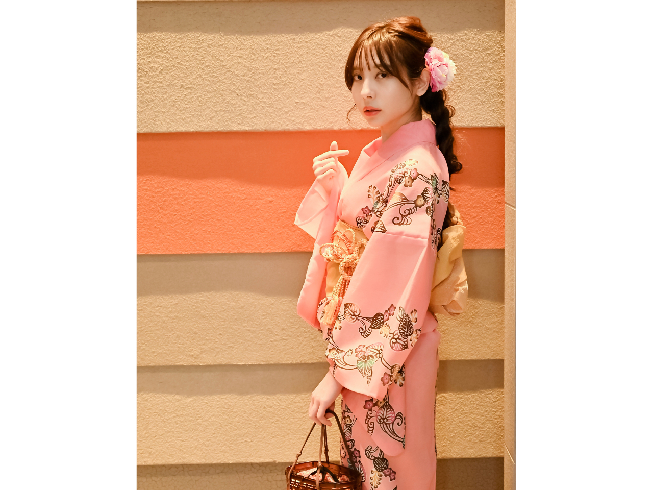 紅型浴衣を身にまとい、サロンから徒歩1〜2分の場所にある本格スタジオ「studio U.N.I」のプロカメラマンにロケ撮影していただけるプランです♪