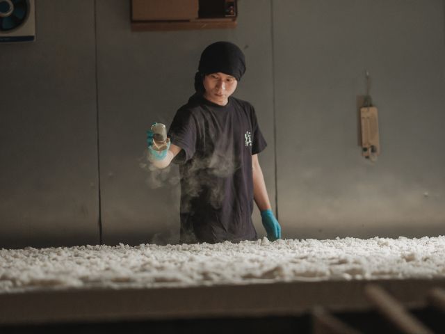 ユネスコ無形文化遺産にも登録された、こうじ菌を使った「伝統的酒造り」の工場をご案内、