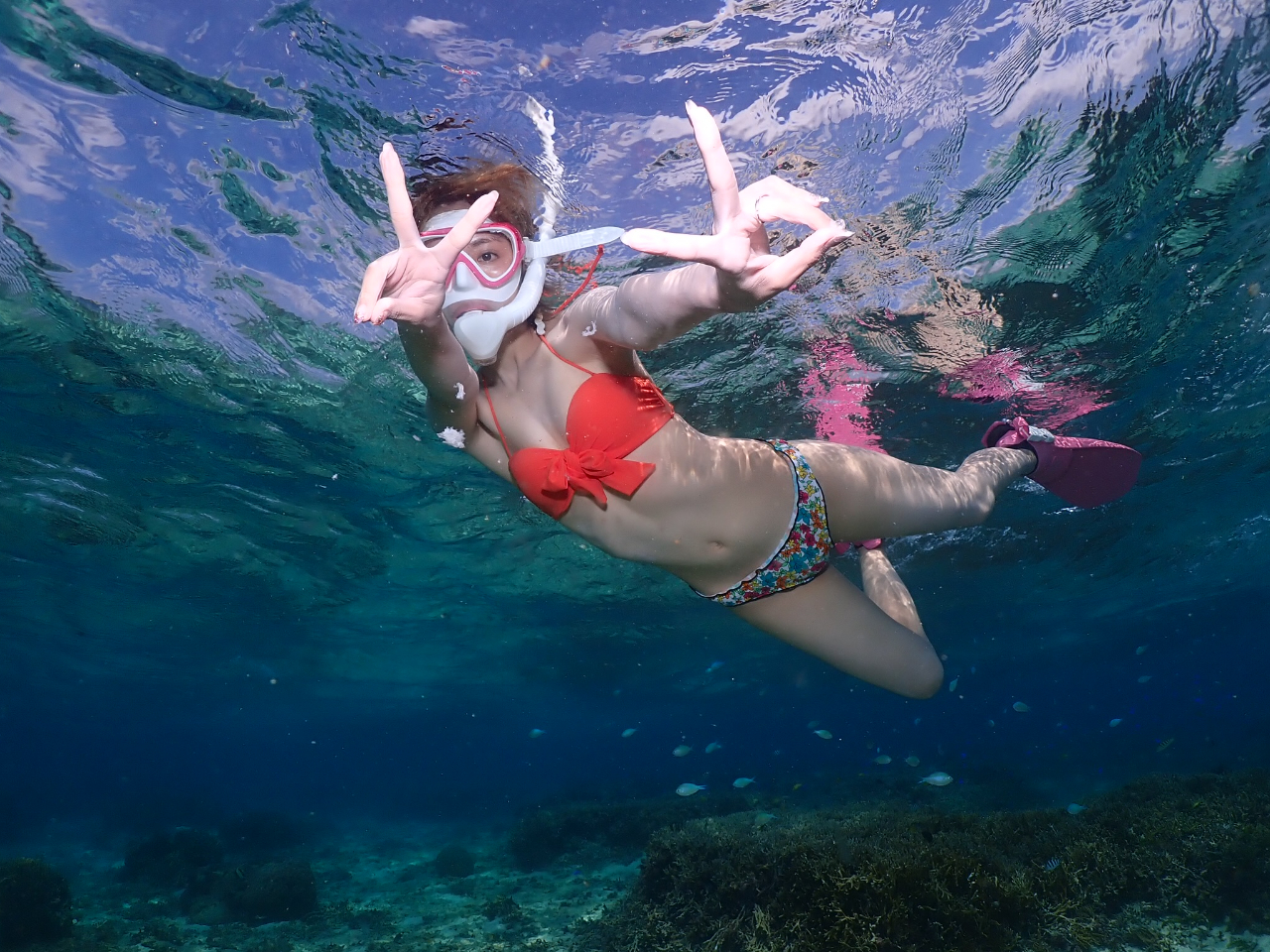 写真をその場でプレゼント。素潜り・スキンダイビング