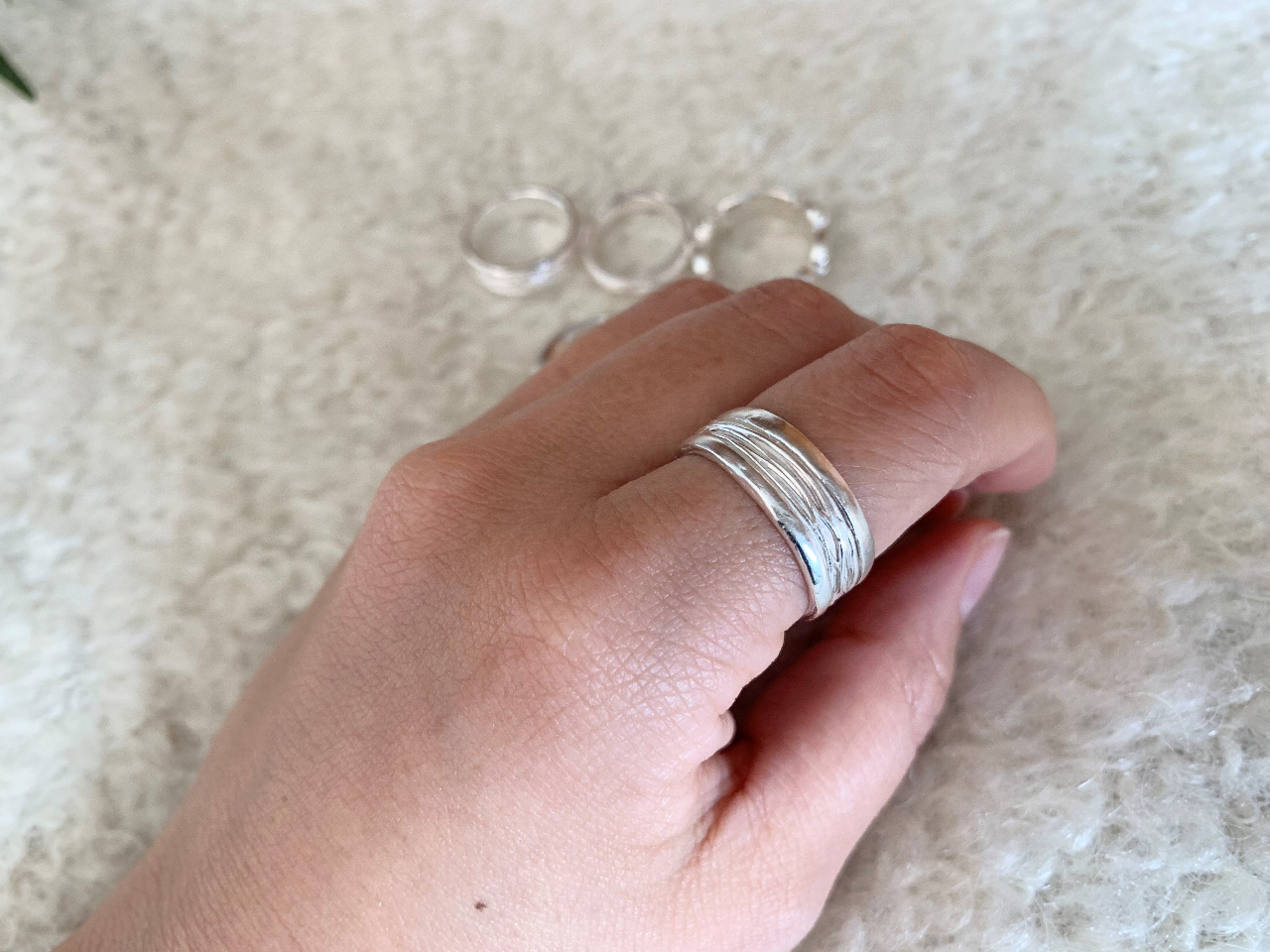 事前にメールで、手持ちの指輪に合うシンプルな指輪を作りたい希望を伝えていたところ、先生からシリコンの型で連続模様が作れると提案いただき、気に入った型にはめ込んで作ることにしました。