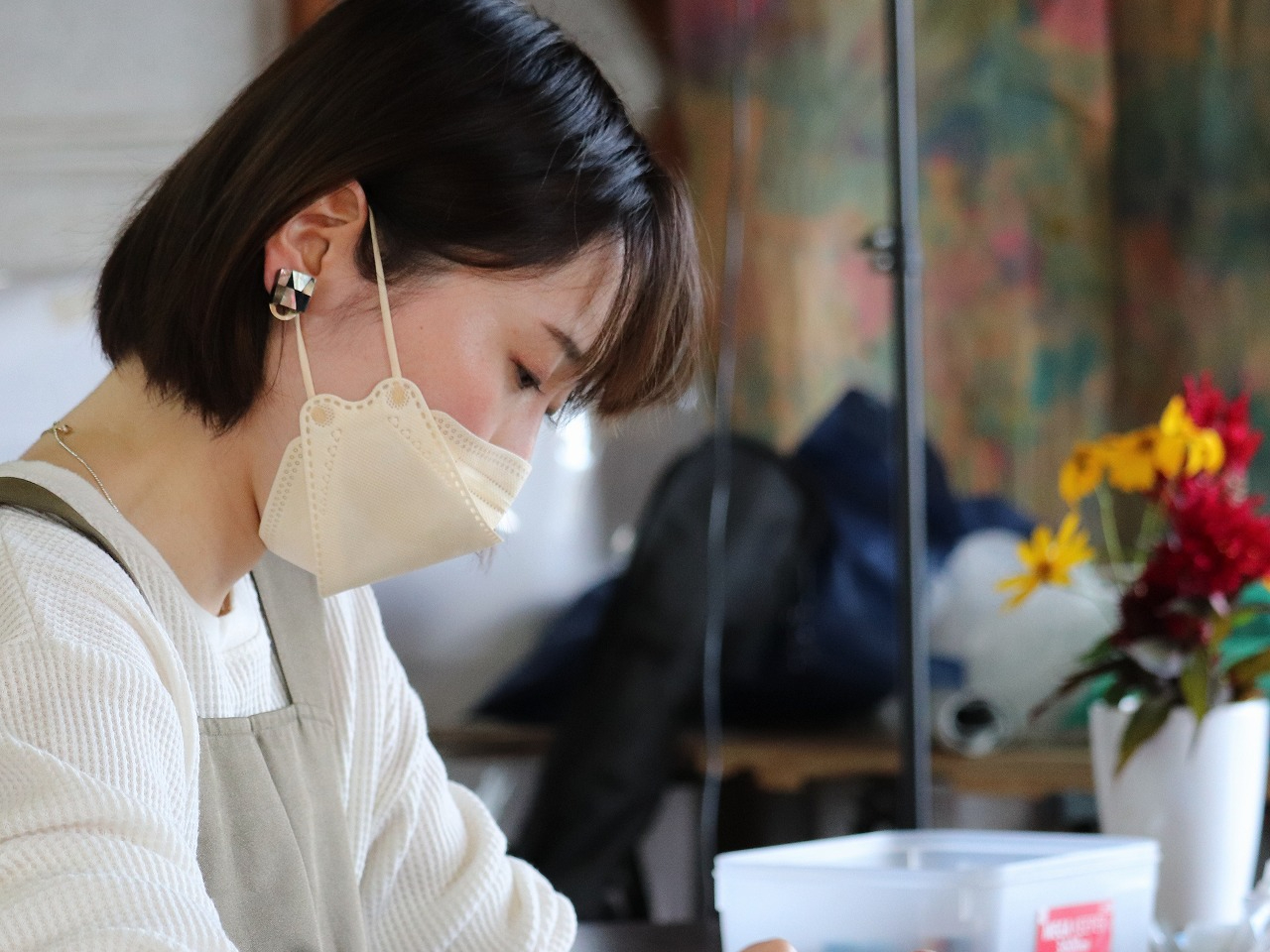 エプロンなど貸出はありますが、汚れても気にならない服装をお勧めします。