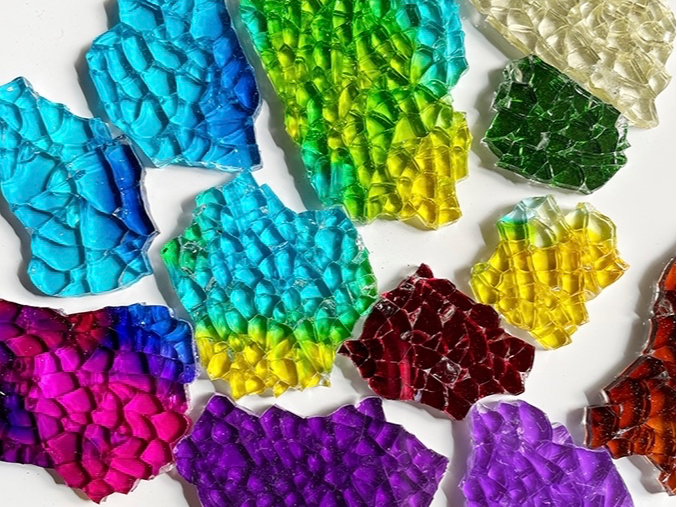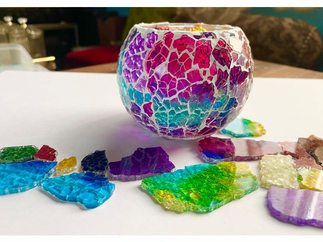 グラデーションカラーがとても綺麗なクラックガラスを使ってキャンドルホルダーを作れます。色の組み合わせを楽しんでくださいね。