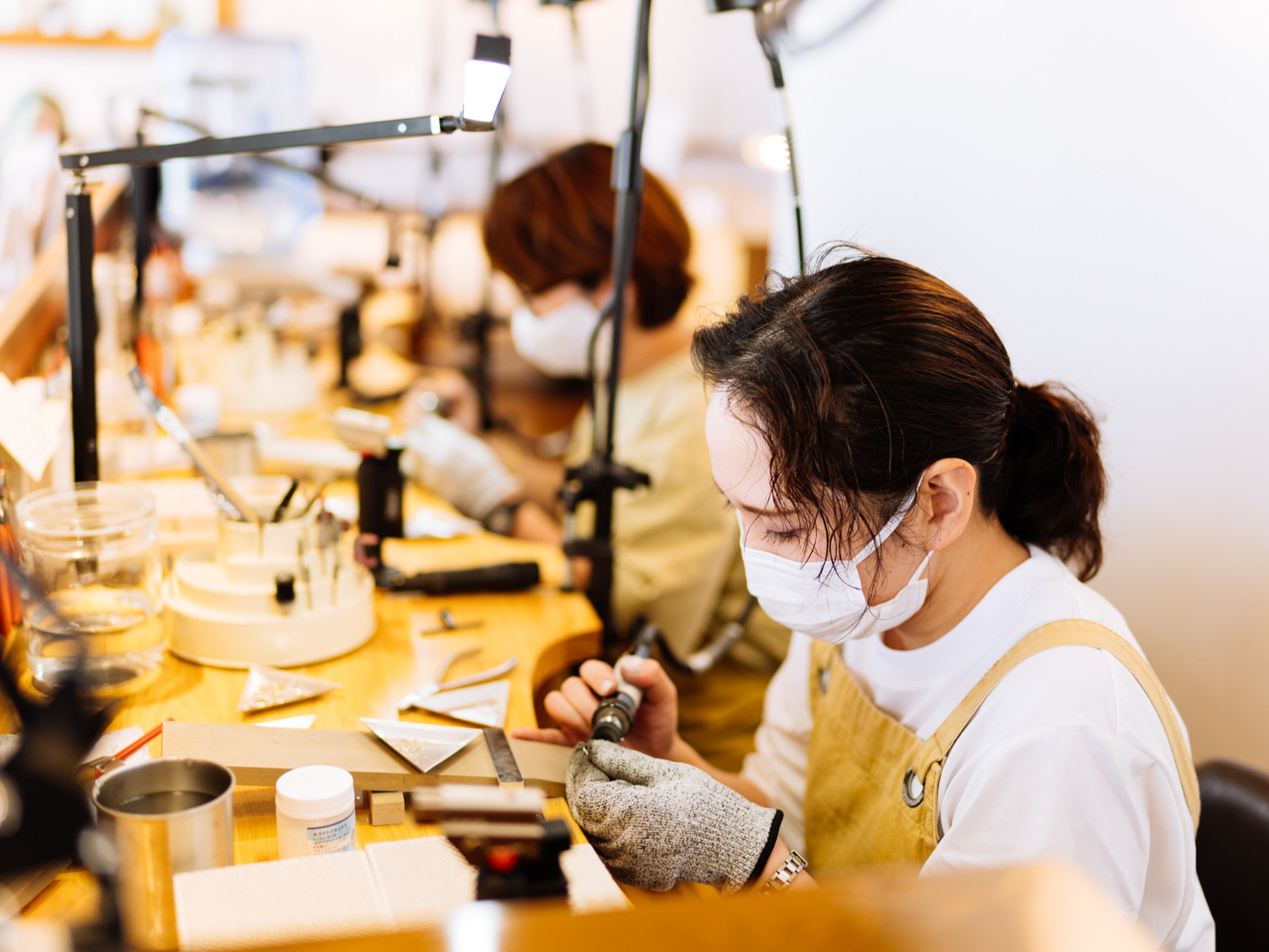 槌目という日本古来より愛されて続ける表面仕上げの指輪の制作を気軽に体験できます。