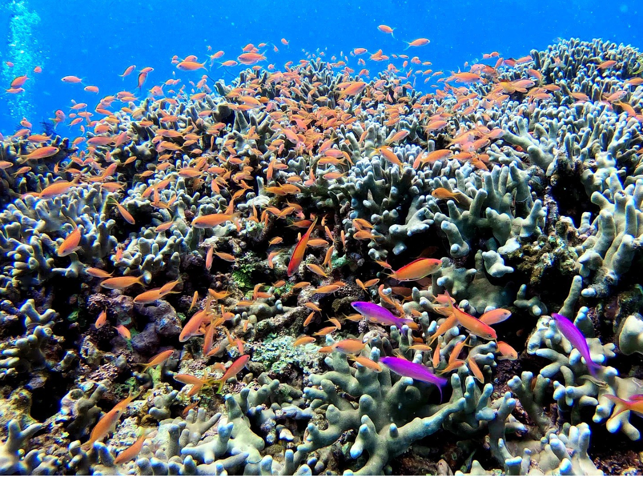 ●ポノポノではダイビングするポイントも海況が許す限り良い方へと向かいます。まったくの初心者でもいきなり大量のサンゴ、ウミガメやマンタと遭遇という場合も。