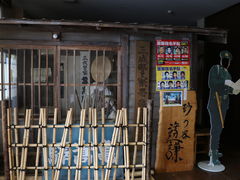 純米大吟醸「仁多米コシヒカリ」や純米吟醸「奥出雲」などを醸す、第三セクターの酒造会社、奥出雲酒造の施設です。酒・焼酎の他、仁多餅、米味噌、米ぬか石鹸など仁多米を使った加工品などを販売しています。ここでも私は運転があるので伴侶だけが試飲をしてお酒を買いました。一角に映画『砂の器』の撮影時に使われた亀嵩駅の看板などが展示されていて、そちらも楽しめました。