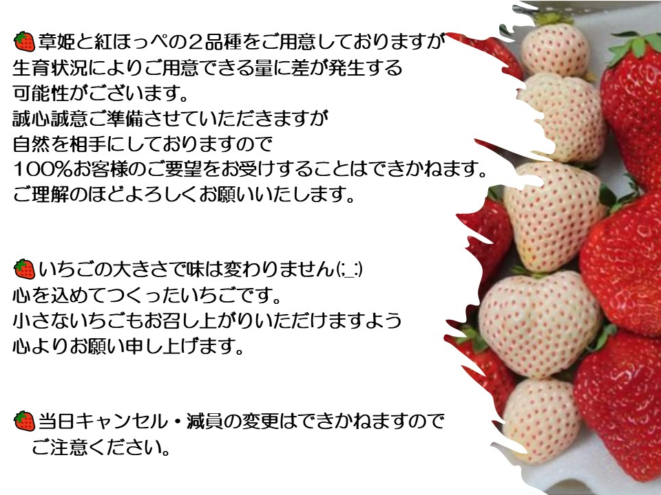 ☆章姫と紅ほっぺの2品種食べ比べ/1ハウス1グループ貸し切り