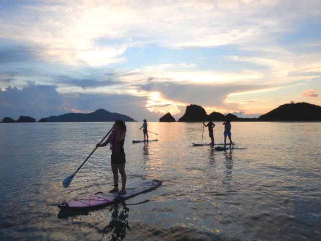 【沖縄・座間味・SUP】夕景を楽しむクルージングへ!サンセットSUPツアー★写真撮影あり★