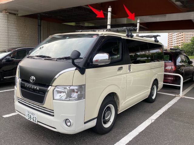 都立大島小松川公園駐車場入口ゲート付近:弊社車両「ハイエース・リラクベース」