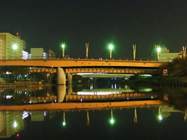 流れの無い穏やかな水路ですので、風の無い日には水面に街の風景が映り込み、まるで夜空に浮いているような浮遊感が味わえます。