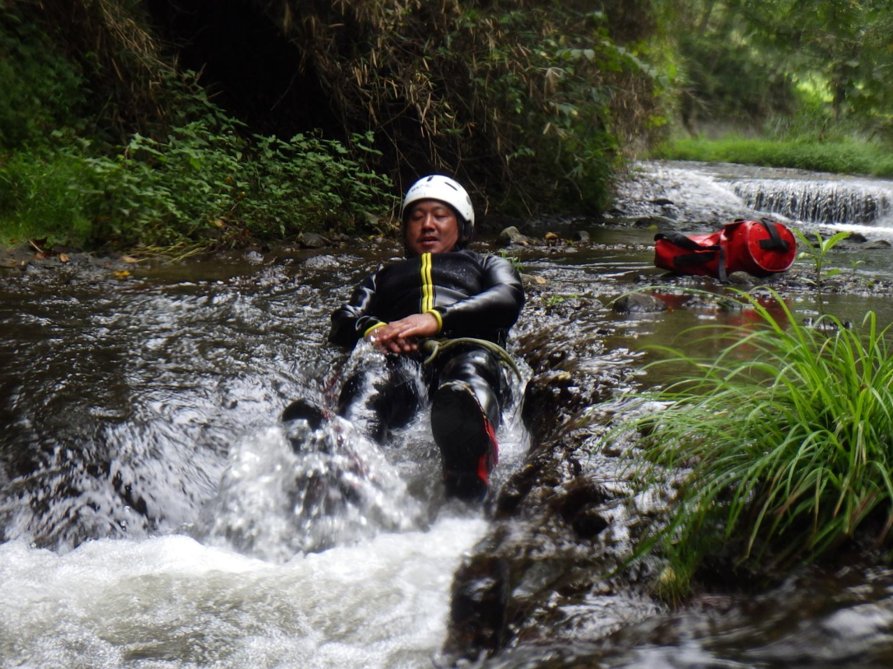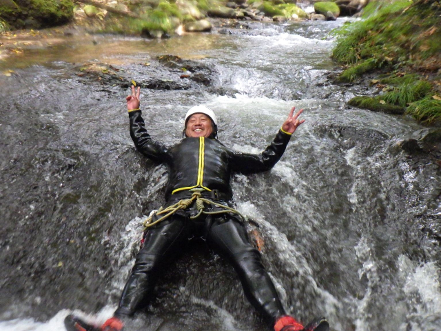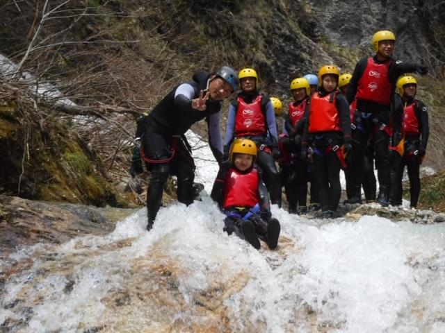 子どもから参加できるウォータースライダーメインの楽しいコース♪沢下り(キャニオニング)