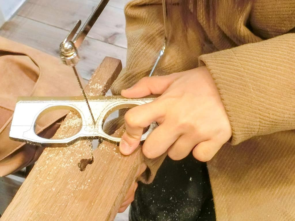 →実際に糸鋸とヤスリを使って削り出しを行います。