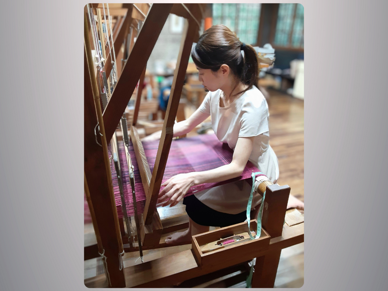 初心者の方でもたった一日でオンリーワンの上質でおしゃれなシルクストールを織りあげられます。