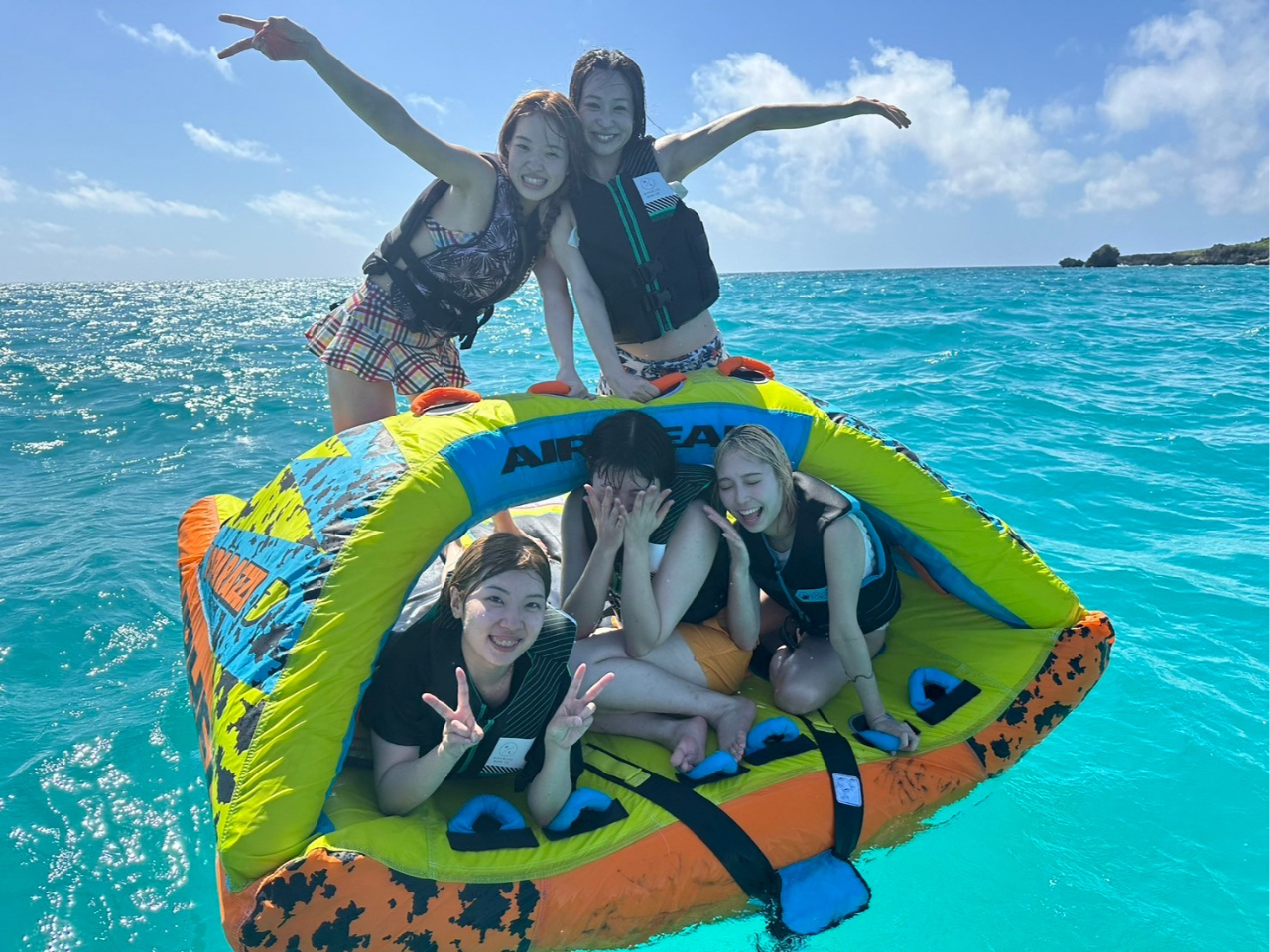 ▼1組貸切制なので、他のお客様を気にせず楽しめます!バナナボート・チュービング