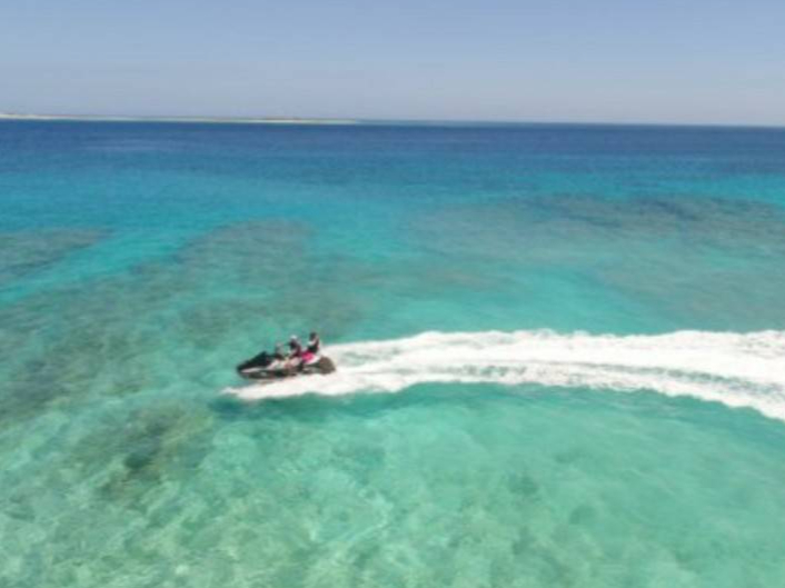 ▼自由にジェットスキーを運転して仲間同士で遊べます。水上バイク