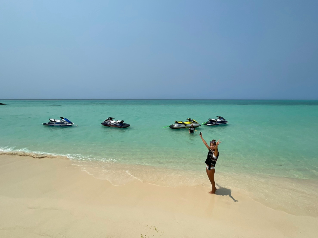 ▼ガイド操縦のジェットスキーで17エンドや幻の島を回ります!