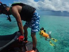 ジェットスキーでお世話になりました。子どもを連れての参加だったので、少し不安もありましたが、担当してくださったベテランの方のおかげで最高の時間になりました。出発前にはシュノーケルの方法も優しく教えていただき、ジェットスキーに乗っているときも、なにかと気にかけていただいて安心して楽しめました。連れてっていただいたシュノーケル ポイントは、サンゴがとっても綺麗で、子どもはもっとやりたかったーとずっと言っていました。写真や動画もたくさんありがとうございました。また宮古島に遊びに行った際はお世話になりたいと思います。本当にありがとうございました。