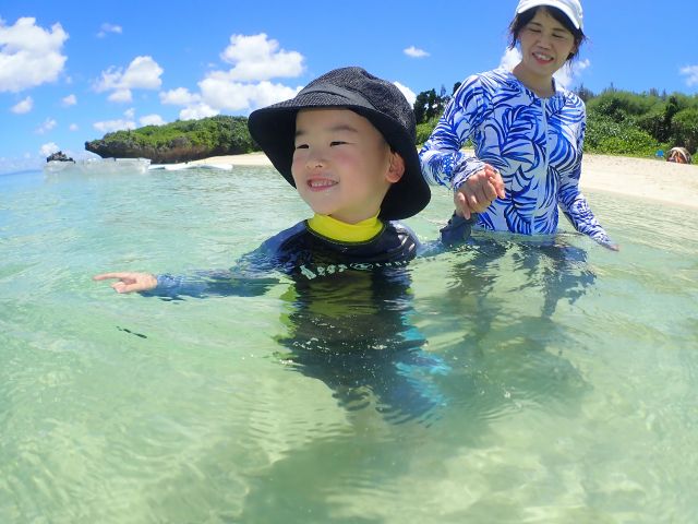 ビーチからのエントリーで、初めての方も気軽に遊べるシュノーケリングコース♪
