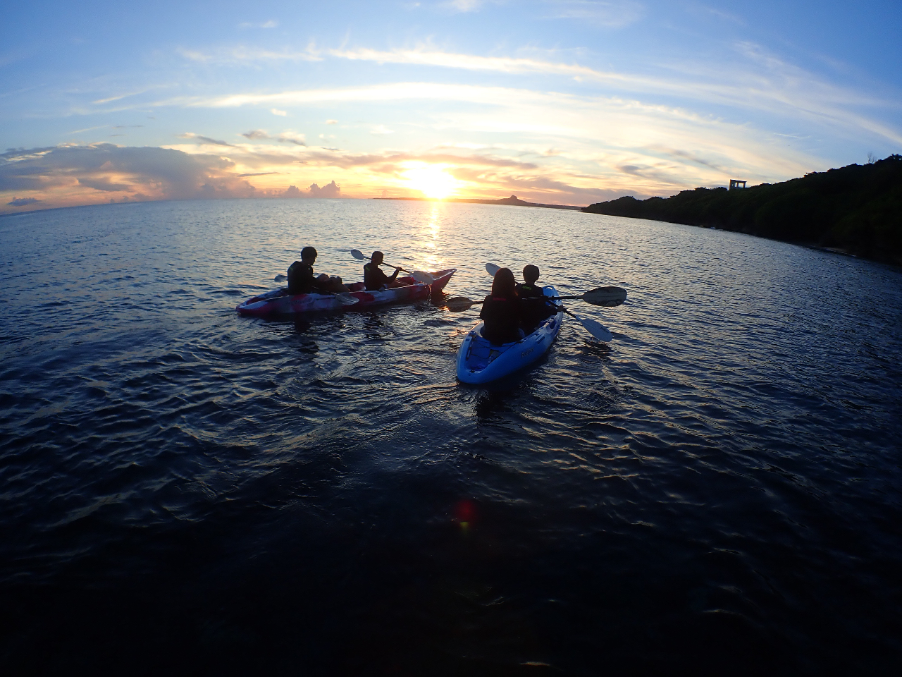 ★沖縄本島北部のきれいな夕日に照らされる海でのカヤック♪