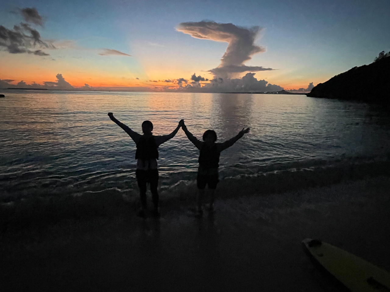 ★沖縄本島北部のきれいな夕日に照らされる海でのSUP♪